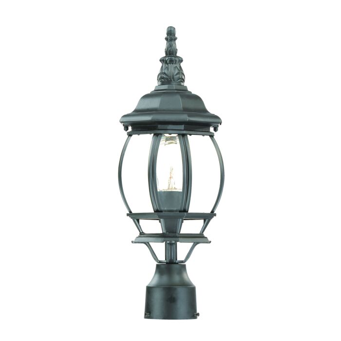 The chateau collection boasts a simple classical style. This lantern features elegant scrollwork and clear beveled glass panes. It's cast aluminum construction resists rust and corrosion.- durable cast aluminum