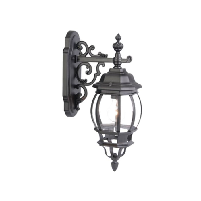 The collection boasts a simple, classical style. This lantern features elegant scrollwork and clear beveled glass panes. It`s cast aluminum construction resists rust and corrosion.