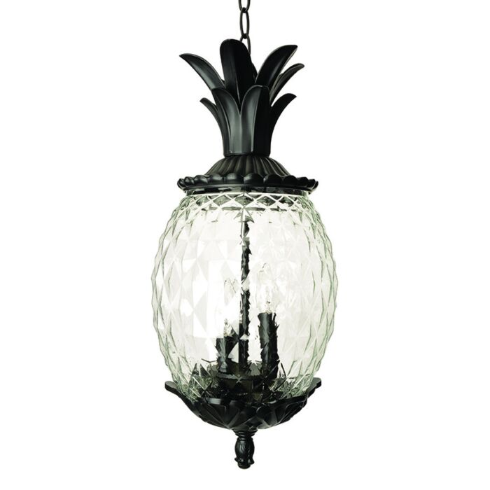 Lanai embodies southern charm. Welcome guests with this fun tropical fruit shaped lantern. This popular collection is constructed of cast aluminum with clear textured glass in the shape of a pineapple.