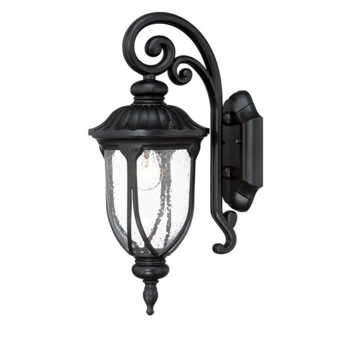 Welcome guests with this classic collection of outdoor lighting. Collection features a timeless style that will enhance any style of architecture. Sweeping and swirling lines of cast aluminum embrace a clear, seeded glass globe.