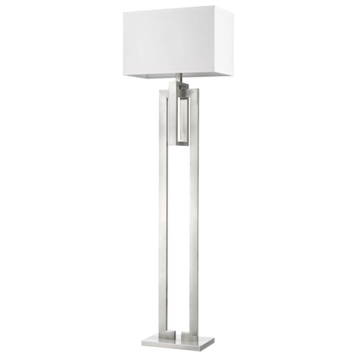 As the name implies precision features an interlocking base of rectangular shapes. Its brushed nickel finish is complemented by an elegant ivory shantung shade that will work well with any interior. Clean crisp design.- floor lamp