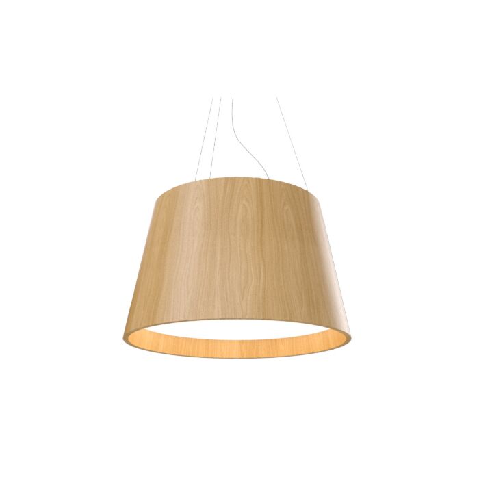 This contemporary pendant light features a conical shape, crafted from Louro Freijo wood for a modern farmhouse aesthetic. It is suitable for damp locations and comes with a 5-year warranty.