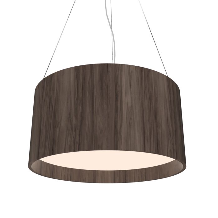 This pendant light features a cylindrical design and is made from American Walnut for a contemporary and mid-century modern look. It is suitable for damp locations and comes with a 5 year warranty.