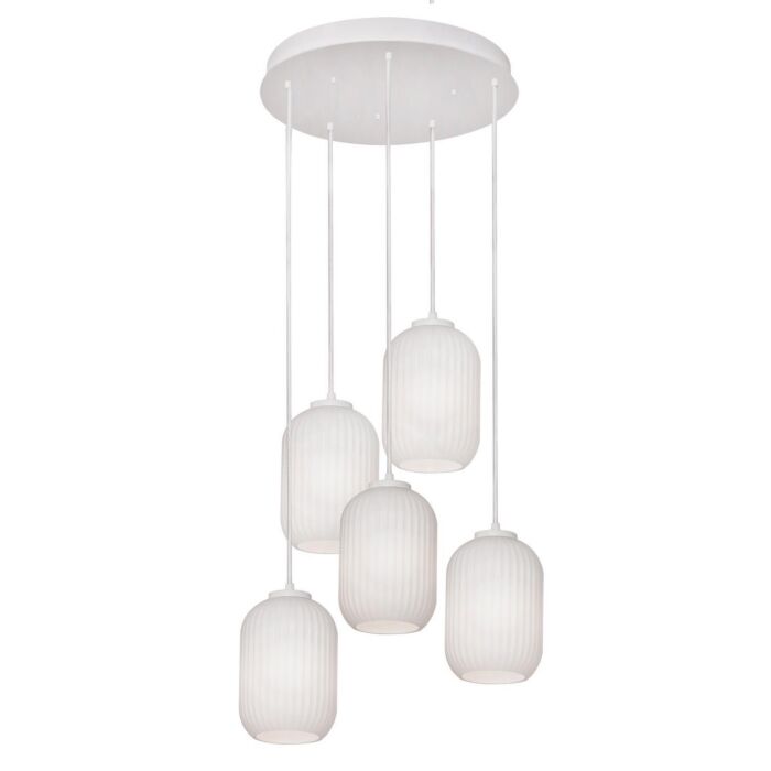 This 5-Light Pendant-Multi-Port from AFX Lighting is part of the Callie collection. It comes in a White finish.- Measures 8.00" H x 24.00" W