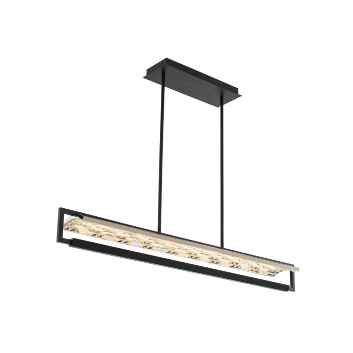 This Capuccio LED Island Pendant in Matte Black w with Chrome is manufacturered by Allegri- Measures 14"H x 46.00" L x 6.00" W