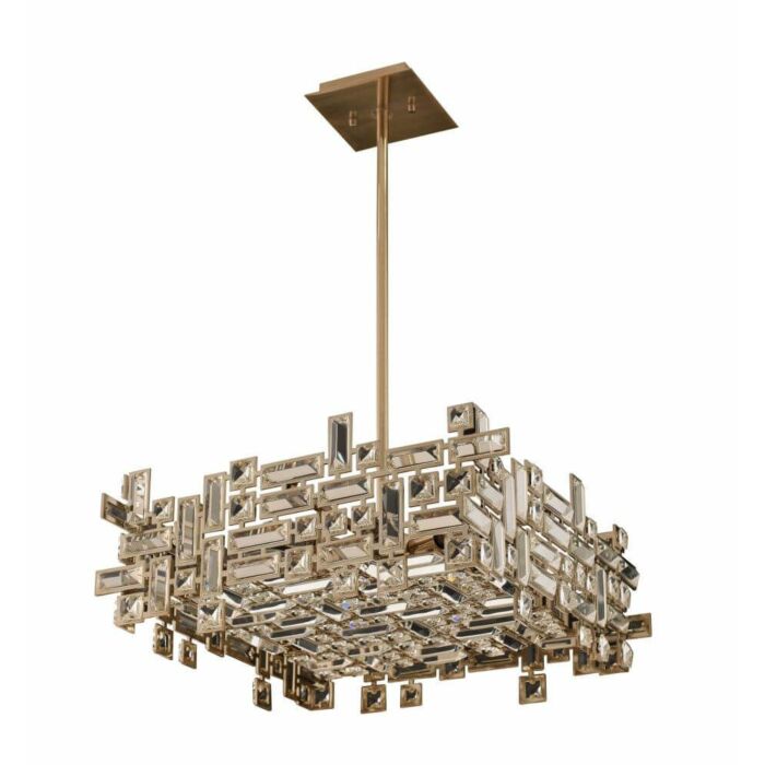This 8-Light 21 Inch Square Pendant from Allegri is part of the Vermeer collection and comes in a Brushed Champagne Gold finish.It measures 14" high x 22" wide. This light uses 8 E12 Candelabra bulb(s). Dry rated. Can be used in dry environments like living rooms or bedrooms. Includes 60 of wire. Includes (1) 6" (1) 12" and (1) 24" Stems
