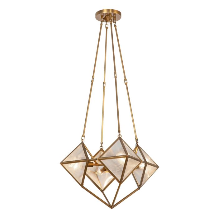 Cairo Four Light Chandelier in Ribbed Glass Vintage Brass by Alora