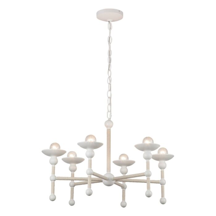 Nadine Six Light Chandelier in Matte White Cotton by Alora