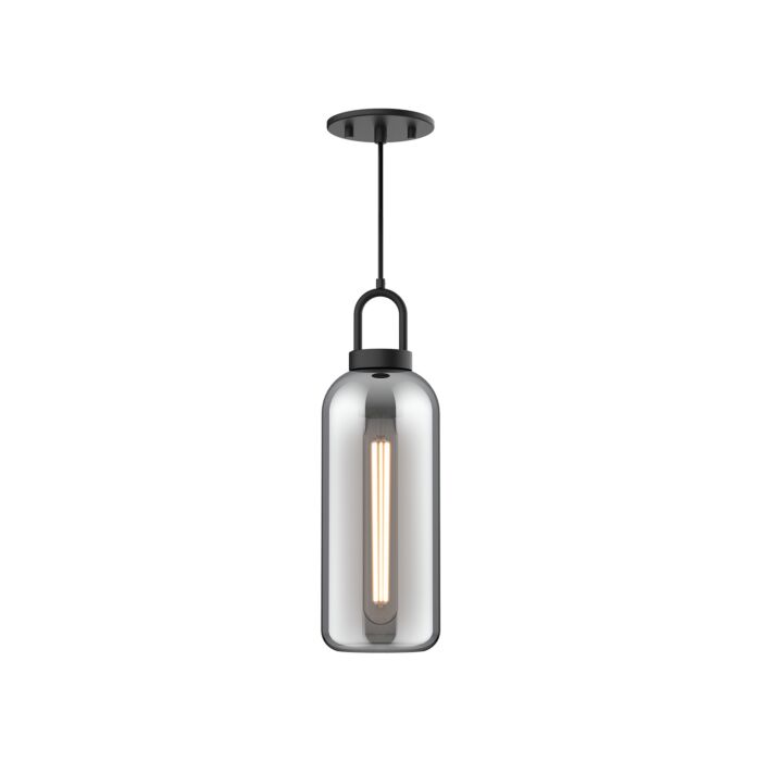 Soji One Light Pendant in Matte Black Smoked Solid Glass by Alora