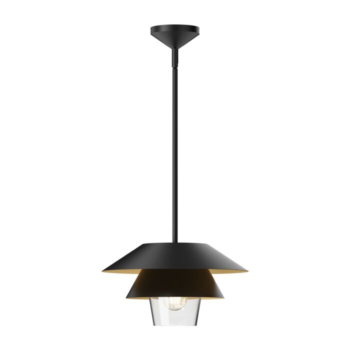 Tetsu One Light Pendant in Matte Black Clear Glass by Alora