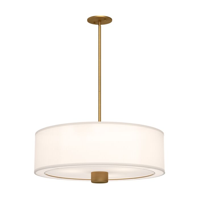 Theo Three Light Pendant in Aged Gold White Linen by Alora