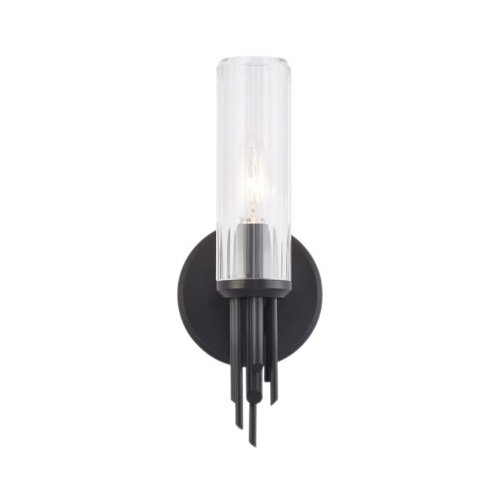 Torres One Light Vanity in Clear Ribbed Glass Matte Black by Alora
