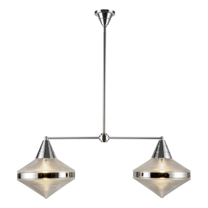 Willard Two Light Linear Pendant in Polished Nickel Prismatic Glass by Alora