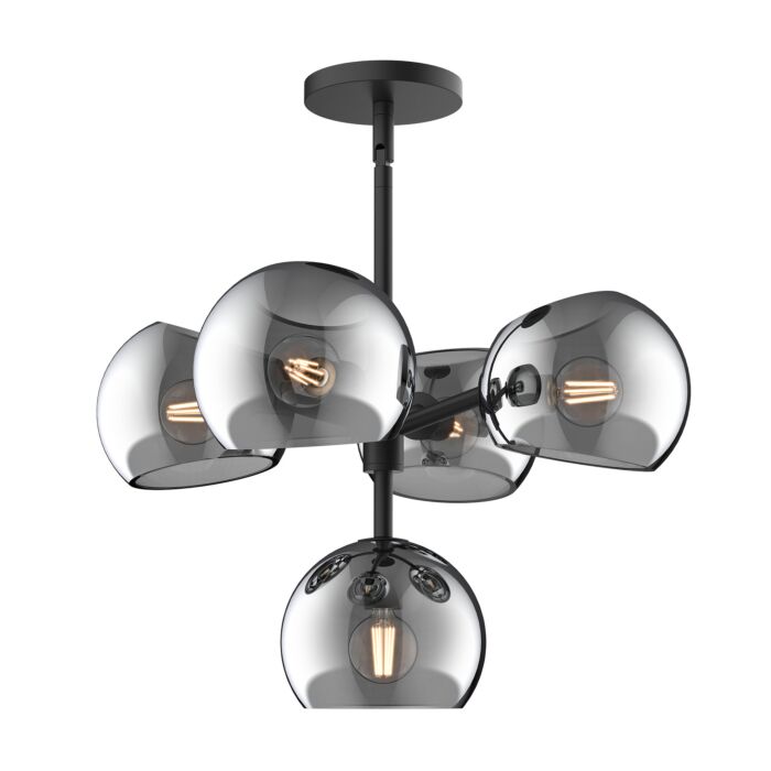 Willow Five Light Chandelier in Matte Black Smoked Solid Glass by Alora