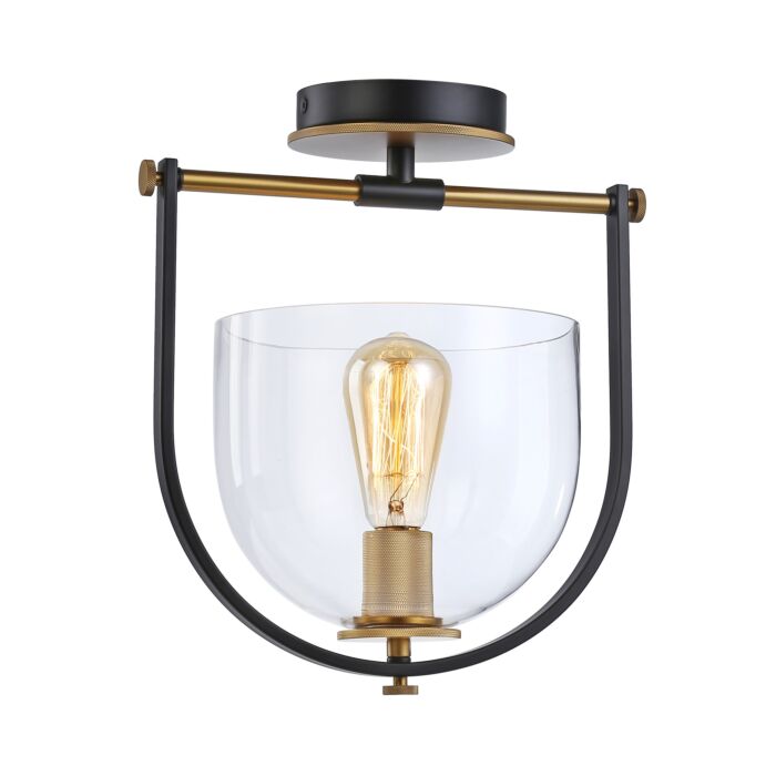 Cheshire Collection 1-Light Semi-Flush Mount in Black and Brass
