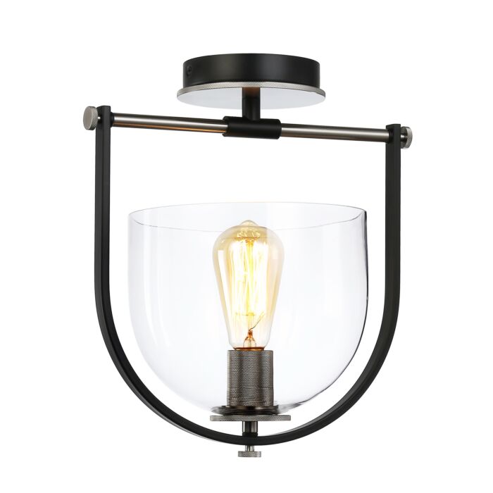 Cheshire Collection 1-Light Semi-Flush Mount in Black and Nickel