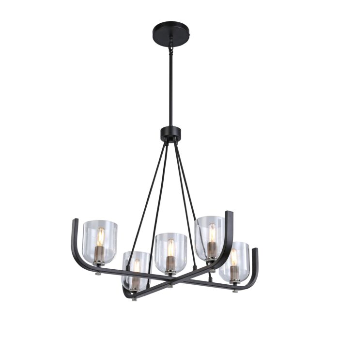 This 5-Light Chandelier from Artcraft is part of the Cheshire collection and comes in a Black & Nickel finish.It measures 26" high x 30" wide. This light uses 5 E12 bulb(s). Dry rated. Can be used in dry environments like living rooms or bedrooms.