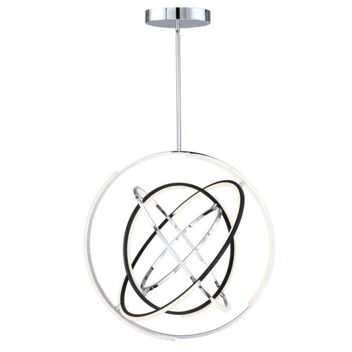 Designed by Kevin Kraemer, the orbs from the Trilogy collection are stunning. High quality polished nickel frames with black accents - illuminated by LED on certain parts of the framing. These orbs can be adjusted to your desired position since the spheres can be rotated. 32" diameter chandelier shown. (There is also a smaller 24" version available)