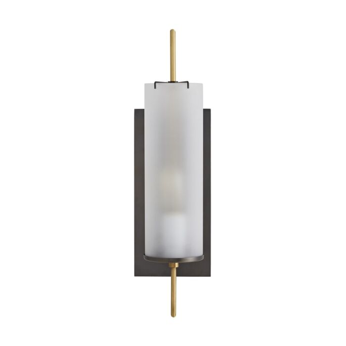 Inspired by the renowned Stefan Floor Torchiere, this single-light wall sconce masterfully blends bronze with frosted glass and antique brass details to produce a refined and contemporary aesthetic, ideal for pairing on either side of a hallway mirror, and while rated for damp environments, prolonged exposure to covered outdoor conditions may impact the finish.