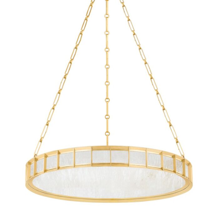 This LEDa 1-Light LED Chandelier in Vintage Brass is manufacturered by Corbett Lighting- Measures 4"H x 30.00" W