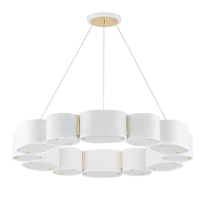 This Opal 12-Light Chandelier in Soft White with Vintage Brass is manufacturered by Corbett Lighting- Measures 9"H x 30.00" W