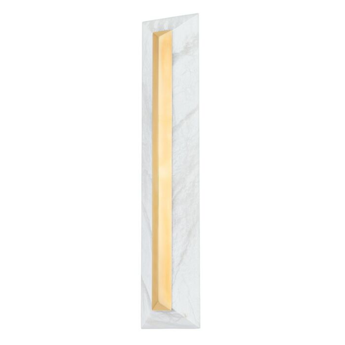 This Perth 1-Light LED Wall Sconce in Vintage Brass is manufacturered by Corbett Lighting- Measures 27"H x 5.25" W