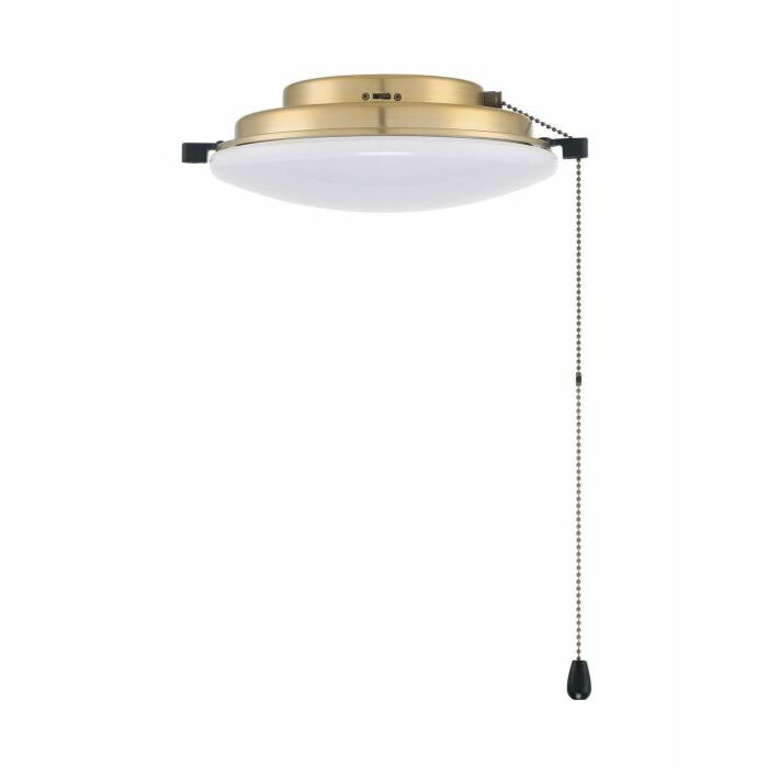 This 1-Light Light Kit from Craftmade is part of the Universal Fan Light Kit collection and comes in a Satin Brass finish.Universal Fan Mount Indoor Rated 20 Watt Integrated LED, 3000/4000/5000K, 1304 Lumens, Dimmable LED(Included) JA8/Title 24 Compliant