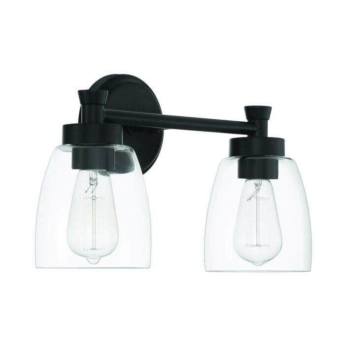 Short Description: This 2-Light Bathroom Vanity Light from Craftmade comes in a Flat Black finish.