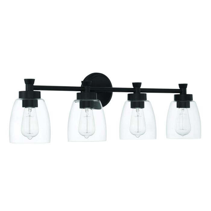 Short Description: This 4-Light Bathroom Vanity Light from Craftmade comes in a Flat Black finish.
