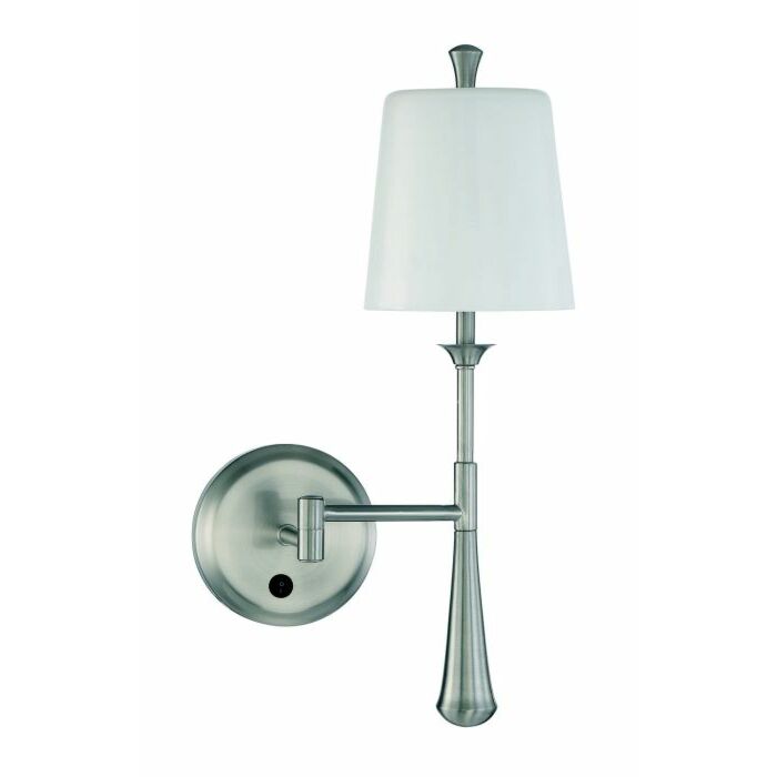 Short Description: The timeless style embraced by our Palmer collection by Craftmade features brushed polished nickel frames with crisp frosted opal white glass shades. Damp rated and offering a variety of silhouettes - mini chandelier, Swing arm sconce with backplate on/off switch, sconce and 2 to 4 light vanities, the Palmer collection is ideal for any space from the bathroom or bedroom to the library or office.