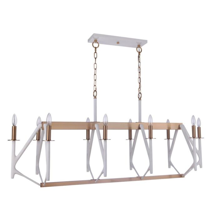 This The Reserve 10-Light Island Pendant in Matte White with Satin Brass is manufacturered by Craftmade- Measures 24.5"H x 56.00" L x 16.50" W