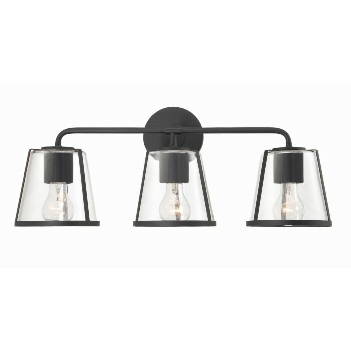 This 3-Light Bathroom Vanity from Crystorama is part of the Fulton collection. It comes in a Black finish.- Measures 9.25" H x 23.25" W