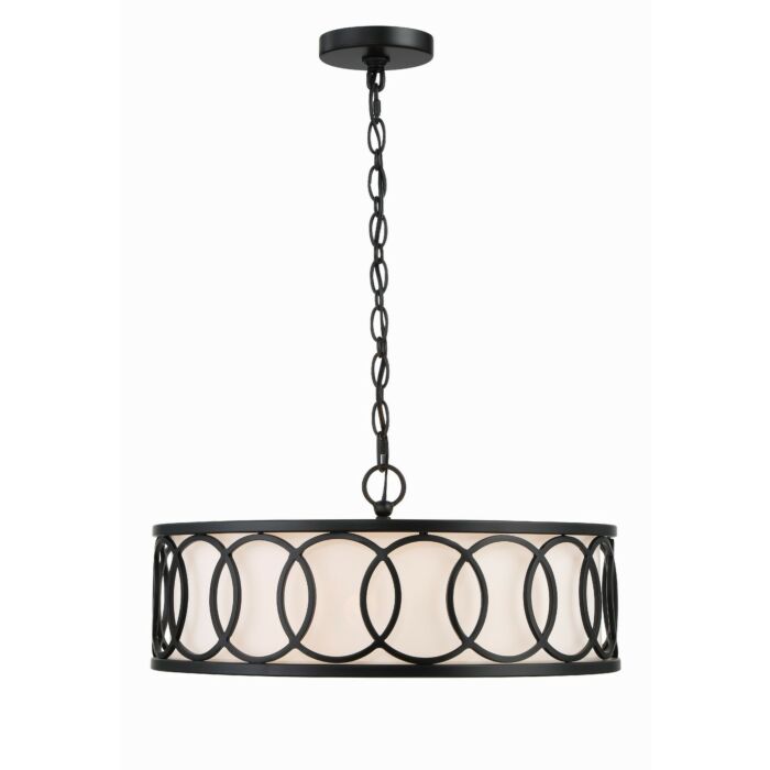 This 6-Light Chandelier from Crystorama is part of the Graham collection. It comes in a Matte Black finish.- Measures 8.00" H x 18.00" L x 18.00" W