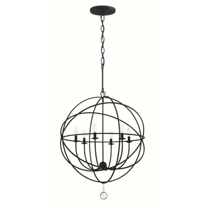 This 6-Light Chandelier from Crystorama is part of the Solaris collection. It comes in a Black finish.- Measures 27.50" H x 22.50" L x 22.50" W