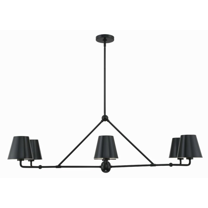 This 6-Light Chandelier from Crystorama is part of the Xavier collection. It comes in a Matte Black finish.- Measures 14.75" H x 46.00" L x 46.00" W