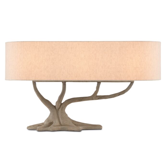 Made of concrete in the great faux bois tradition, the Cotswold Table Lamp is a soulful way to bring the beauty of nature indoors. Shaped like a Bonsai, the gray lamp has an elongated natural linen shade that is in perfect scale to the artful plant to which it is affixed. A design detail of note is how the artisan who created it truly captured the essence of the plant's fluidity.