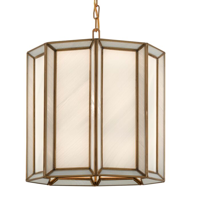 This 1-Light Pendant from Currey and Company is part of the Daze collection. It comes in a Antique Brass/White finish.- Measures 13.50" H x 12.00" W