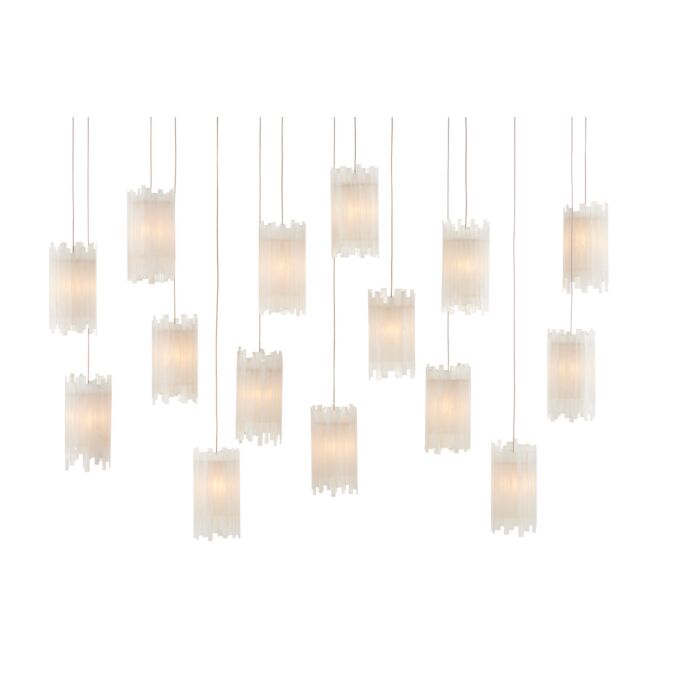 This 15-Light Pendant from Currey and Company is part of the Escenia collection. It comes in a Natural/Painted Silver finish.- Measures 10.00" H x 12.00" L x 48.00" W