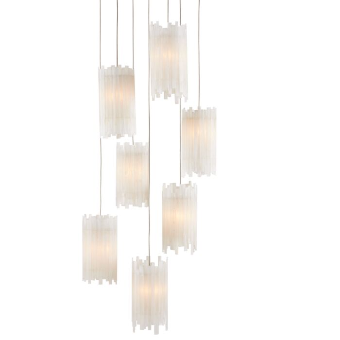 This 7-Light Pendant from Currey and Company is part of the Escenia collection. It comes in a Natural/Painted Silver finish.- Measures 10.00" H x 13.00" W