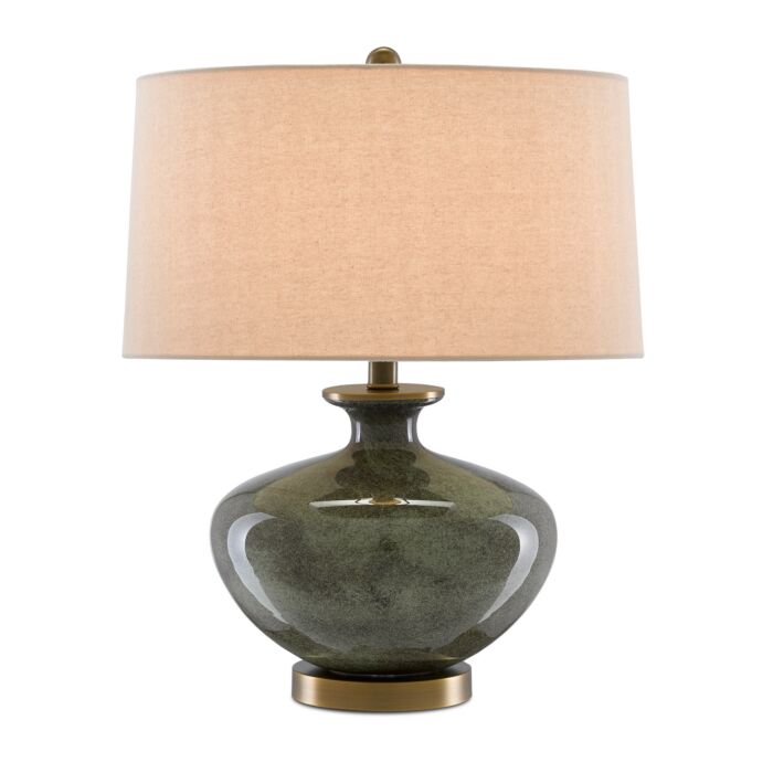 This 1-Light Table Lamp from Currey and Company is part of the Greenlea collection. It comes in a Dark Gray/Moss Green/Antique Brass finish.- Measures 21.25" H x 17.00" W