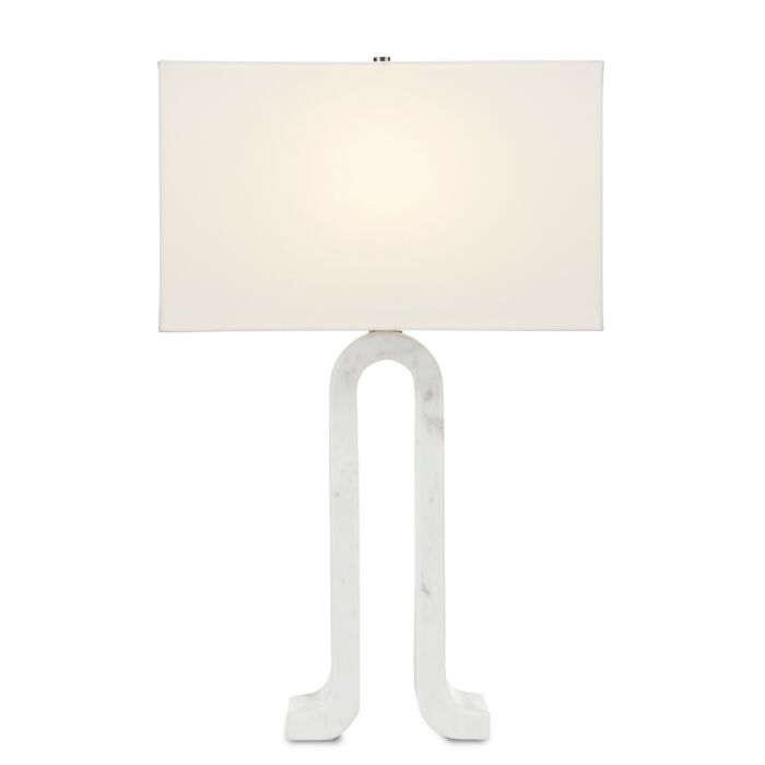 This 1-Light Table Lamp from Currey and Company is part of the Leo collection. It comes in a White Marble finish.- Measures 30.25" H x 5.00" L x 19.00" W