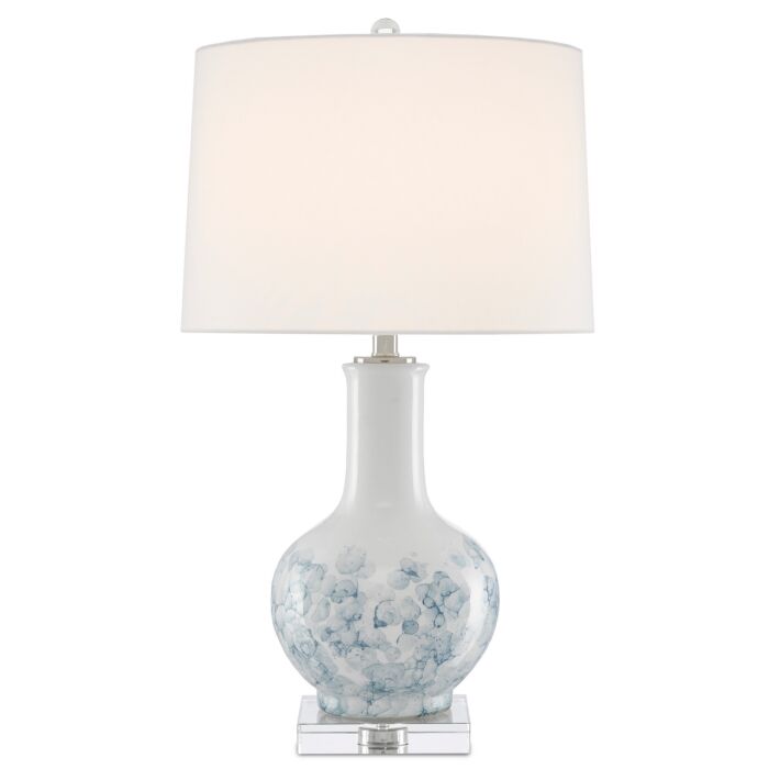 This 1-Light Table Lamp from Currey and Company is part of the Myrtle collection. It comes in a White/Blue/Clear/Polished Nickel finish.- Measures 28.00" H x 16.00" W