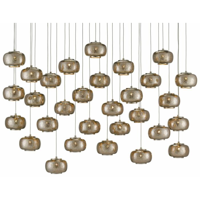 This 30-Light 0 Light Pendant from Currey and Company is part of the Pepper collection. It comes in a Painted Silver/Nickel finish.- Measures 5.00" H x 18.00" L x 54.00" W