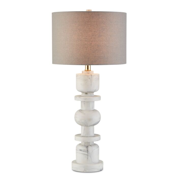 This 1-Light Table Lamp from Currey and Company is part of the Sasha collection. It comes in a White/Gray finish.- Measures 27.75" H x 13.00" W