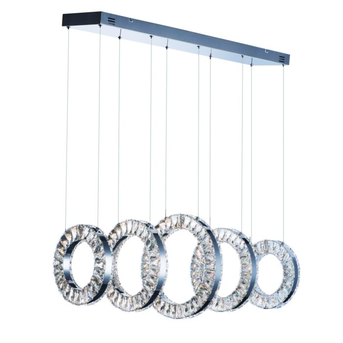 This 5-Light Linear Pendant from ET2 is part of the Charm collection. It comes in a Polished Chrome finish.- Measures 13.75" H x 37.25" L x 13.75" W