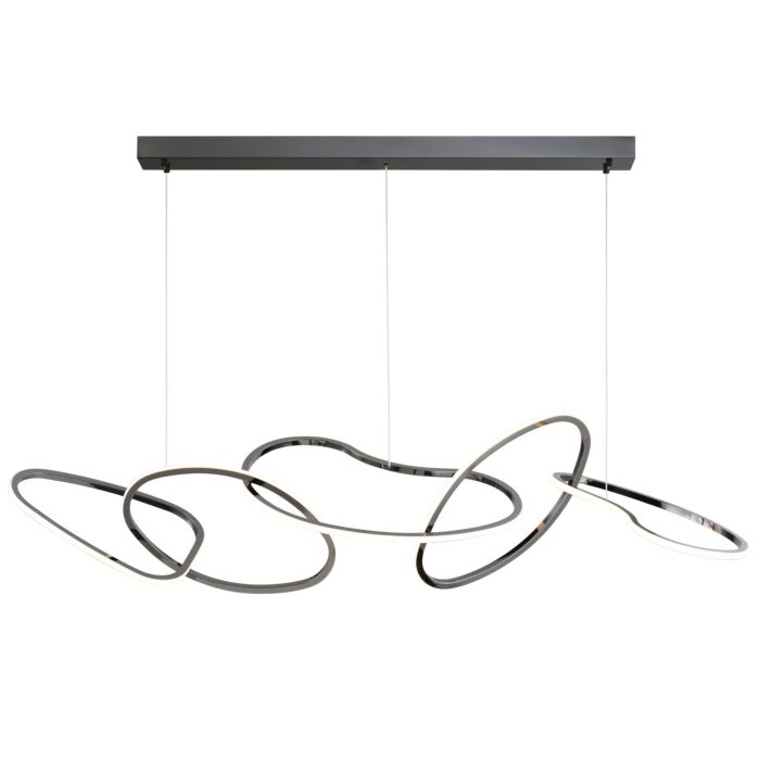 This 1-Light Linear Pendant from ET2 Lighting comes in a Black Chrome finish.- It measures 12 high x 16" long x 56" wide.