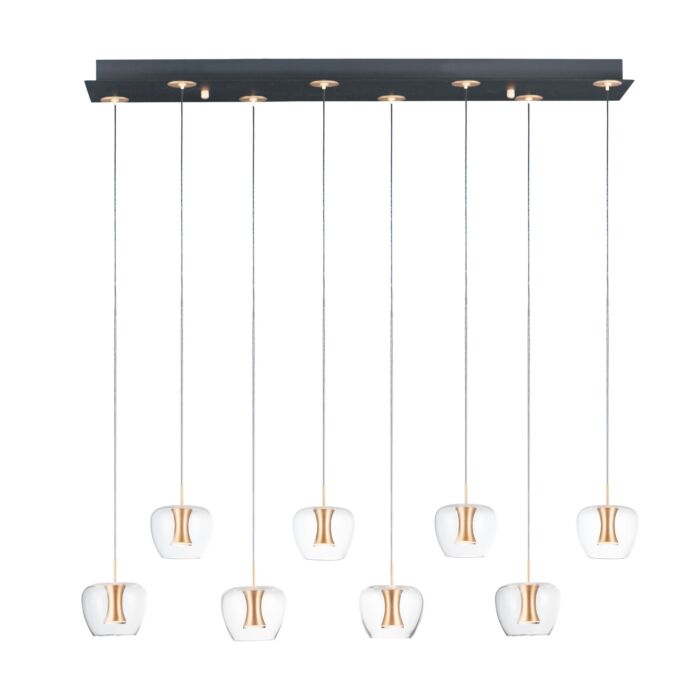 This 8-Light Pendant from ET2 is part of the Newton collection. It comes in a Black / Gold finish.- Measures 5.75" H x 38.50" L x 10.50" W
