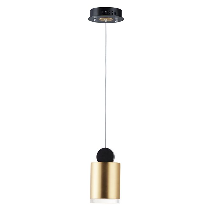 This Nob 1-Light LED Pendant in Black with Gold is manufacturered by ET2 Lighting- Measures 7.5"H x 4.00" L x 4.00" W
