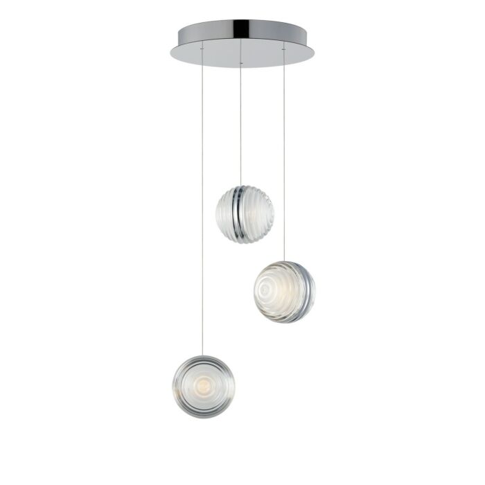 This 3-Light Pendant from ET2 is part of the Pulse collection. It comes in a Polished Chrome finish.- Measures 4.75" H x 11.75" L x 11.75" W