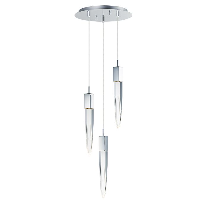 This Quartz 3-Light LED Pendant in Polished Chrome is manufacturered by ET2 Lighting- Measures 21"H x 13.00" L x 13.00" W